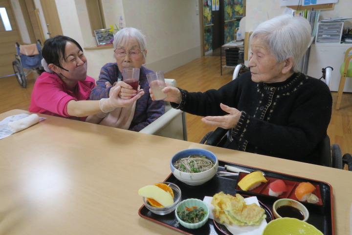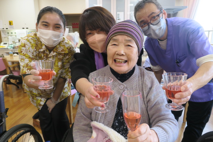 各ユニットでみんなで1年の健康と発展を祈って乾杯🥂✨