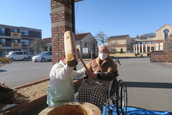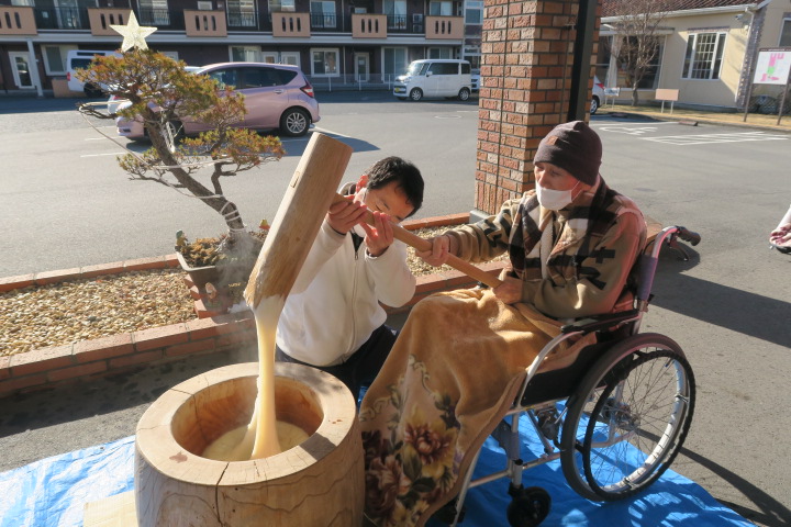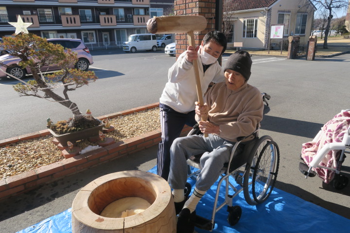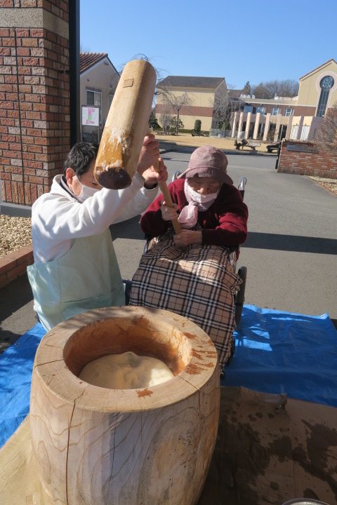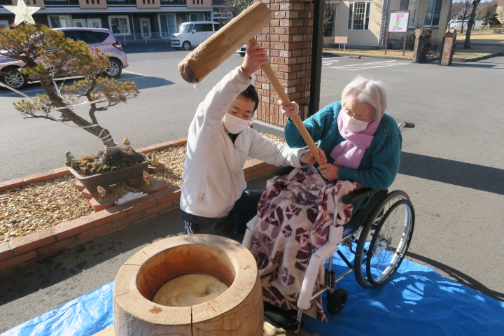 100歳の方の力強い餅つきには職員一同感激しました✨