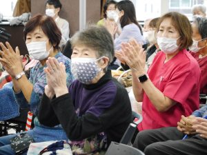 太鼓の力強い演奏に感動し、花笠のみなさんと一緒に踊り、チアダンスチームからは元気をもらい