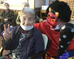 節分の日、まめまきを行い皆さまと一緒に季節の行事を楽しみました!