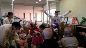 サンタ帽をかぶった園児たちが元気いっぱいに登場すると、皆さま一気に明るい雰囲気に♪