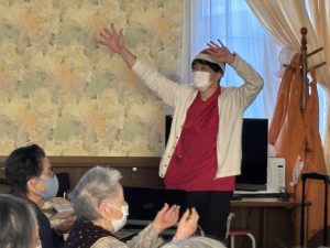 今年の敬老会は、隣接する特別養護老人ホームケアプラザ而今と合同で行い、