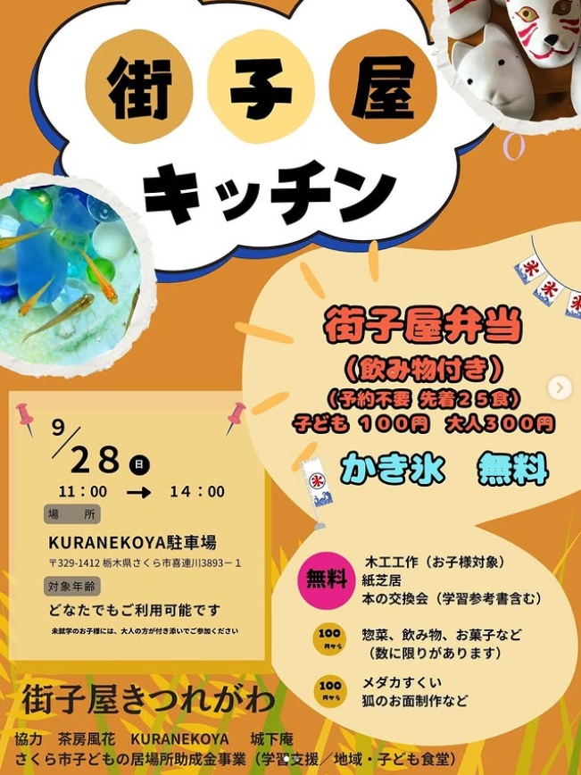 今月も街子屋キッチン開催です。今月から開催場所がKURANEKOYA駐車場に戻ります。