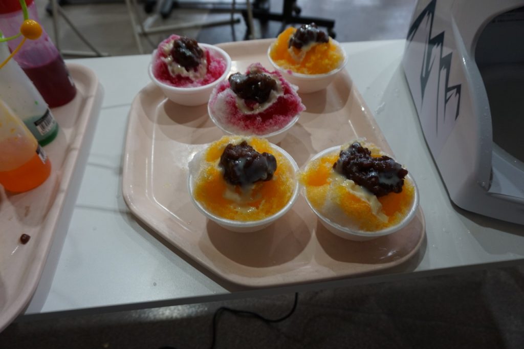 今後気温が30℃超えてこない予報なので、33℃の今日、今年の夏を締めくくる。かき氷を行いました。今年は連日猛暑が続き水分補給を兼ねて20回程度かき氷を行いました。来年も楽しみにしていると皆さんから嬉しい声を頂きました。