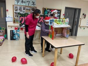 各ユニットごとにクリスマス会を実施、サンタの手品あり、ゲームあり、プレゼントあり楽しい