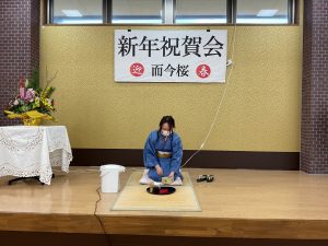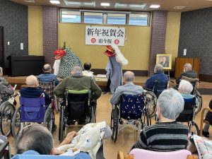 2026/01/16 新年祝賀会 新年祝賀会を1月7日に実施致しました。初釜では、職員の岸村さんに行って頂きました。 今年の獅子は、2頭で皆様の頭を噛んで回り、今年一年の健康を祈願しました。 Category : 日記